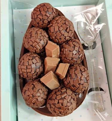 Eu já trabalhava com bolos, mas nunca tinha feito ovo em fatia. Resolvi testar e foi uma das coisas que mais vendeu na Páscoa. Aumentei minhas encomendas sem precisar investir muito.